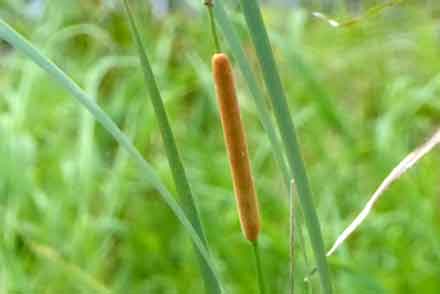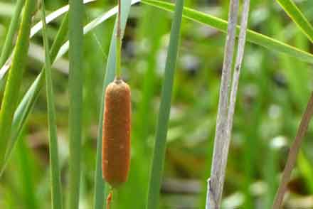 の湿原の森の入口の所で、ガマの花が咲いている。