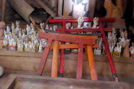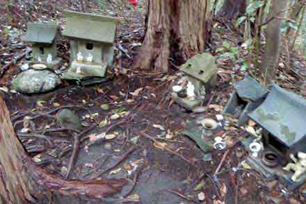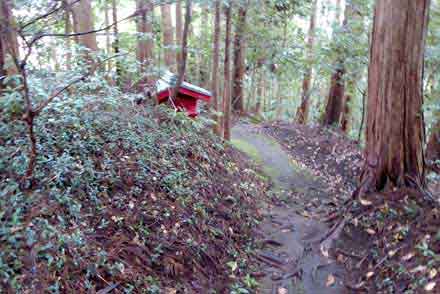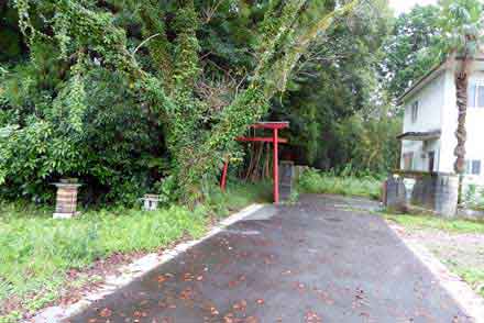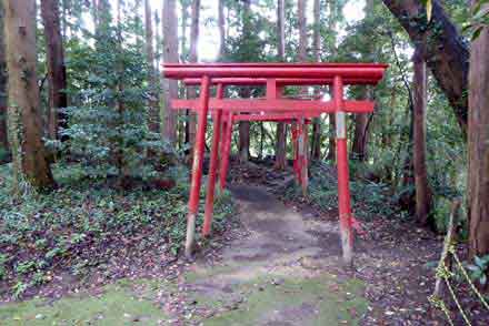 がある。この福住寺の東側の細い道を入って行った突き当りに、ちょっと広くなった所があり、ここから奥を見れば赤い鳥居が見える。この鳥居を潜った所に拝殿があり、更にここから鳥居を潜った奥にあるのが奥之院だという。