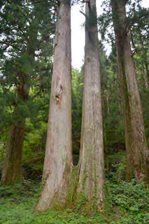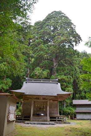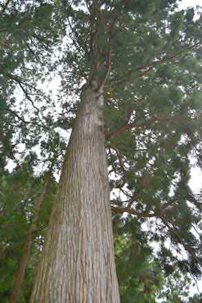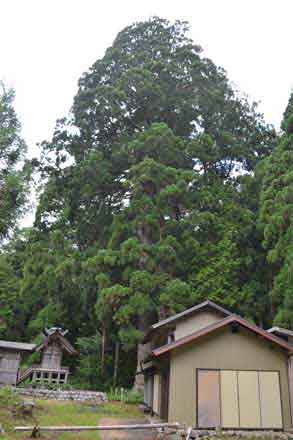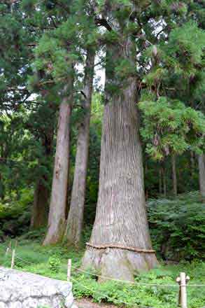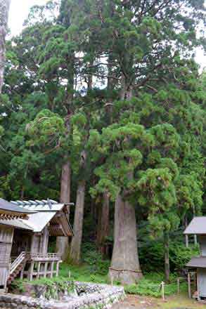 ![]() (14)本殿の後ろに聳える大スギ |