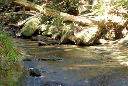 東栄町役場の東側の道から北上すると、300m程で小さな橋(名前は分らない)があり、この沢から足込川に落ちる落差3m程の滝がある。