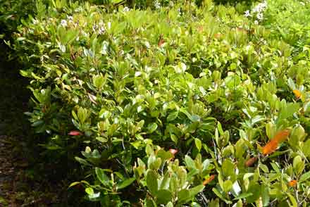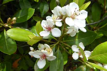 の東屋の南側でシャリンバイの花が咲く。