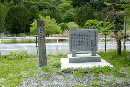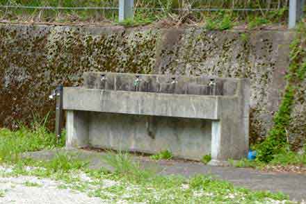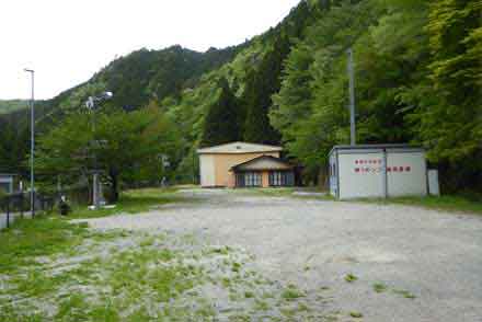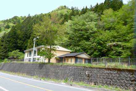 ここが、昭和22年(1947年)に開校し、昭和49年(1974年)閉校した 豊根村立坂宇場中学校の跡で、平成15年(2003年)に取り壊されて校舎等の名残は無いが、門柱や水道等、当時のものが僅かに残っている。