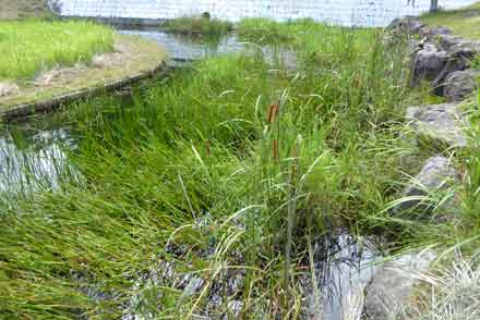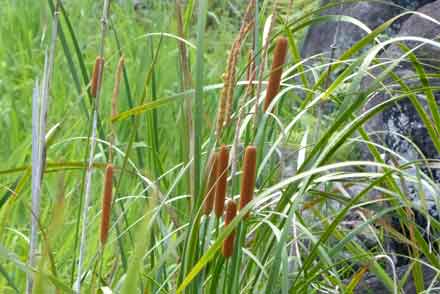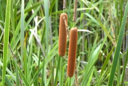 の湿原の森の入口の所で、ガマの花が咲いている。