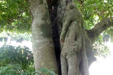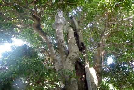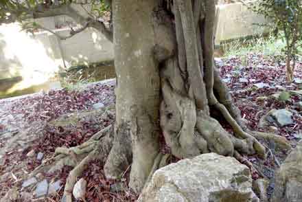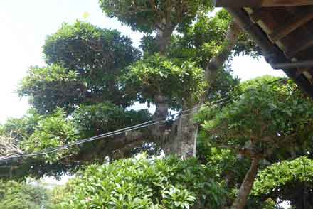戦争の空襲の猛火により、枯死状態となりながら 樹勢が回復したというヤマモモの木。
