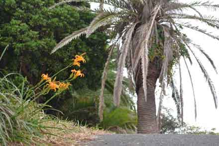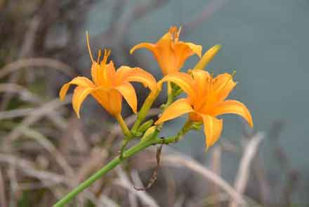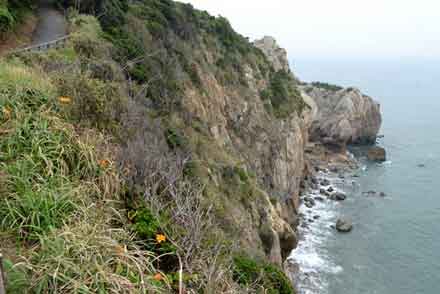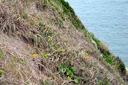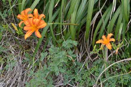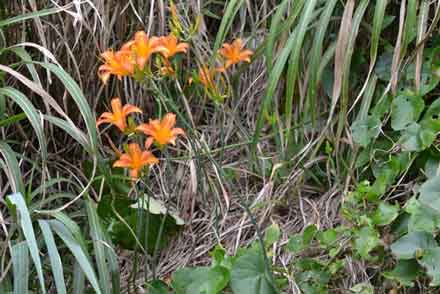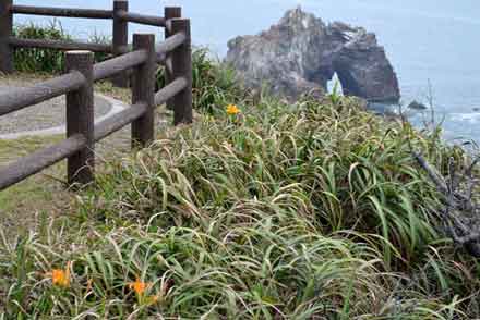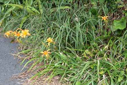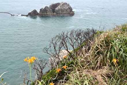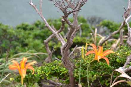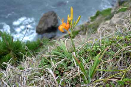 8月~9月にかけて、この間の道筋や海岸までの岩肌で、ハマカンゾウ(浜萓草)の花を楽しむことができる。 ハマカンゾウは、ユリ科 ワスレグサ属の植物で、ノカンゾウに似て、海岸に生育することからこの名がつけられたという。