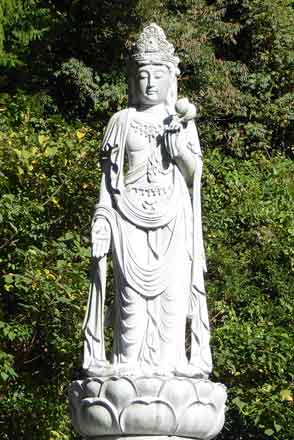 | 本堂とお墓の間に観音像がある。( 2024年11月18日撮影 ) | ||||||