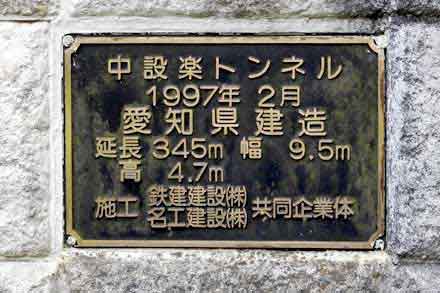 国道151号線の中設楽の信号を過ぎて更に北へ500~600m進むと、平成9年(1997年)2月に竣工された延長345mの中設楽トンネルがある。